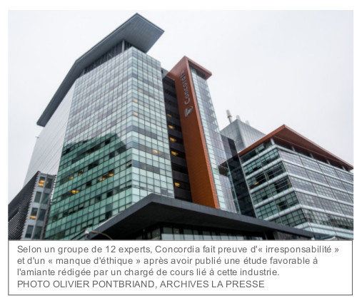 Source: http://www.lapresse.ca/actualites/201511/06/01-4918022-publication-dune-etude-partiale-sur-lamiante-la-reaction-de-concordia-jugee-irresponsable.php