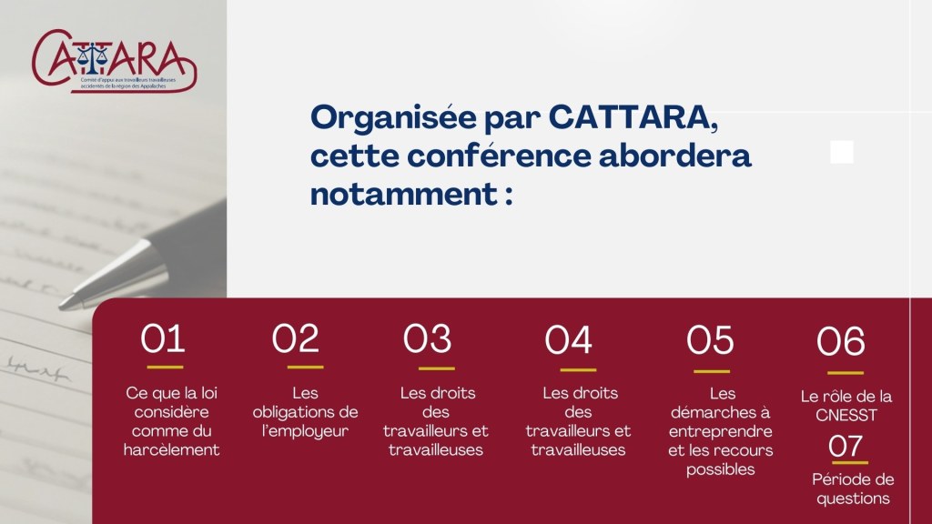 Cette conférence s’adresse autant aux employeurs qu’aux travailleurs et travailleuses et vise à :